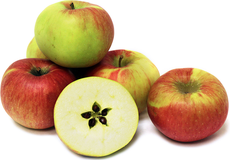 Northern Spy ApplesSkin colour is a green ground, flushed with red stripes where not shaded.
