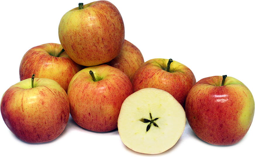 Ambrosia ApplesA cross between "Red Delicious" and "Golden Delicious". It has bright red markings on the outside over a creamy and crisp interior with an aromatic flavour.