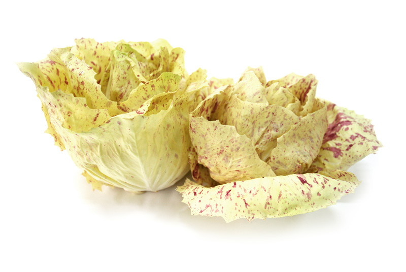 White Radicchio (Castle Franco)White Radicchio has a yellowish-cream leaf with red-speckles. This beautiful, tender, lettuce-like ball unfolds like a rose. It is also known as Castle Franco.