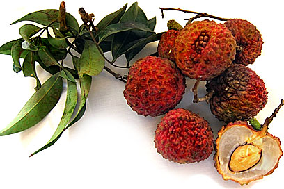 Lychee NutsLychees are oval-round and petite, roughly the size of a walnut, and their leathery skin is covered with tiny spikes. The firm yet gelatinous pulp is chewy and juicy with a sweet, fruity flavour, like a cross of strawberry and watermelon with a touch of pineapple-like acidity.