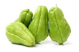 Chayote SquashUnique pear-like shape. Pale lime green colouring and the deep linear indentations that run vertically along the fruit's thin skin.