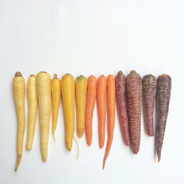 Mixed Heirloom Bunch CarrotsMixed Heirloom Bunch Carrots are a melange of yellow, white, purple haze, black night and the standard orange carrots.