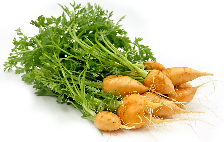 Yellow Mini Top CarrotsYellow Mini Top Carrots are baby yellow carrots with the green tops still attached.