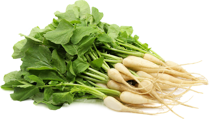 Icicle RadishLong and slim, white icicle radishes have pure white skin and flesh, mild flavour and crisp texture.