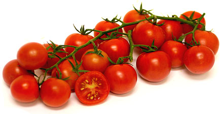 Cherry Tomatoes on the VineUniform in colour and size, with a high sugar to acid ratio. Each tomato is round and red with a sweet tomato flavour.